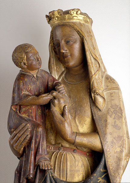 Anónimo. Obra gótica fechada estilísticamente entre 1330 y 1350 . Esta presentación, en piedra, de la Virgen está alejada de lo habitual en este época y zona, presentando rasgos que se generalizarán posteriormente, como es el tratamiento de la ropa y el relación materno-filial que se desprende de la representación.