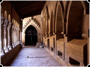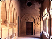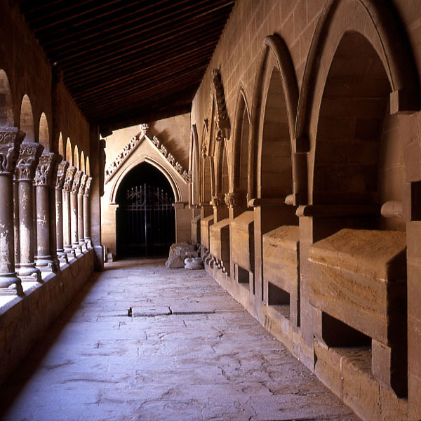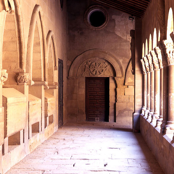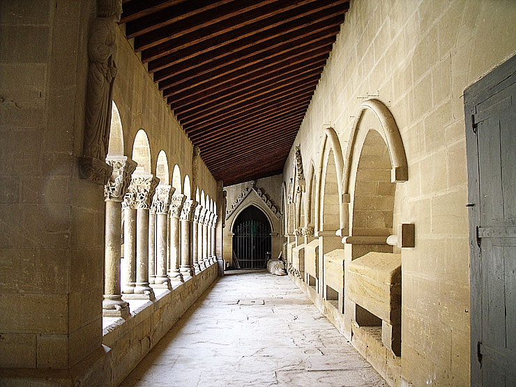 Crujía del claustro lindante con la calle Cuatro Reyes; antes de las obras de restauración del s. XIX daba acceso al cementerio y al resto del monasterio medieval que se desarrollaba hacia el sur. De entre los capiteles de esta panda sobresale el llamado de la bailarina; el que representa la "Conversión de Constantino" se venía interpretando como la entrada del rey Pedro I de Aragón en la ciudad de Huesca en 1096.