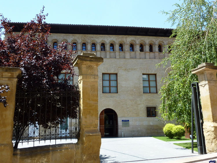 PALACIO DE LOS CONDES DE GUARA.- Saliendo desde la Plaza de San Pedro el Viejo y pasando por la del Mercado, bajamos por la Costanilla de Villahermosa y a mano derecha nos encontramos con esta casa que ha sido adquirida por la Obra Social de Ibercaja y que se ha restaurado según proyecto encargado al arquitecto oscense Eduardo Cuello, y en el que reside el Centro de Formación de dicha entidad bancaria. Del Siglo XVII, se inserta en el casco antiguo de la ciudad. Su fachada principal se abre a un amplio espacio que le realza. La entrada principal es un gran arco de medio punto y en su interior conserva la traza de su escalera imperial. Su imagen exterior representa la tipología de palacio aragonés con su fachada de ladrillo en tres plantas con una leve imposta para separar la ordenada galería de arcos doblados como remate del alero.