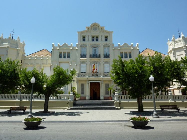 edificio de la Delegación de Hacienda de estilo historicista construido en 1927; y los tres que ocupan la acera contraria al Casino que se les conoce por edificio del Banco Santander (1878 – 88); edificio del Banesto (1888 – 1902) y el de Multicaja (1883), todos ellos restaurados y reformados para usos actuales.