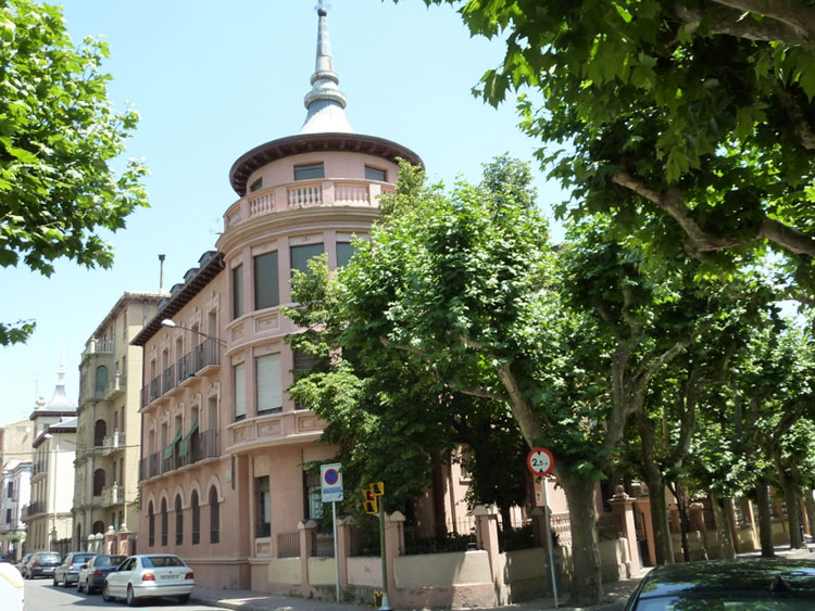 varias casas o chalets racionalistas entre las que destacan ocho utilizadas por diversos colectivos en sus distintas actividades o útiles para vivienda privada como lo fueron inicialmente. Fueron realizadas por el arquitecto Bruno Farina González Novelles entre los años 1929 – 1930. Son los edificios actuales del Instituto de Estudios Altoaragoneses (IEA), la sede del Colegio de Arquitectos, la sede de Comisiones Obreras; y los otros cinco son viviendas particulares. Todas poseen comunes características: tipología de palacetes urbanos, escala proporcionada, siguen pautas eclécticas, adaptan chaflanes con miradores poligonales, marquesinas salientes, molduras ornamentales, formas clásicas y mixtilíneas, pórticos columnados, torres alguna con chapitel, balcones abalaustrados, simetrías en vanos, molduras, miradores,...