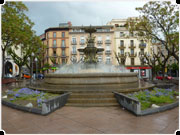 PLAZA DE NAVARRA.- Dicho espacio urbano constituye un conjunto monumental con la fuente de las Musas en su centro, el edificio del Círculo Oscense, los edificios de Multicaja, el Banesto y el Banco de Santander, el de la Delegación de Hacienda, y el de la “Granja Anita”, la Telefónica, la iglesia de Santa Teresa y la Casa Retortillo.